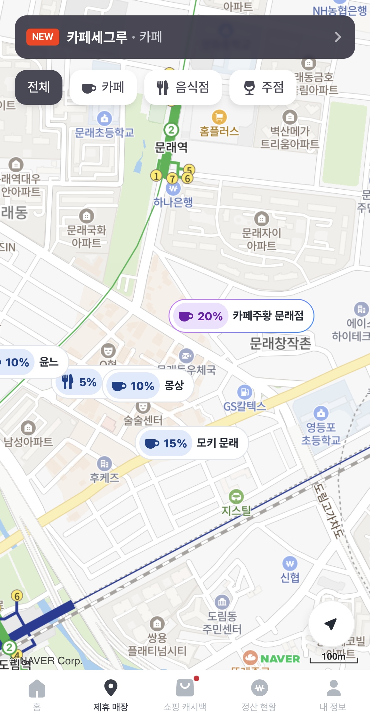 - '내 주변' 제휴 매장 확인하기: 이왕이면 캐시모어와 제휴된 매장을 이용해 보세요. 앱 내 지도에서 쉽게 확인할 수 있는데, 일반 영수증보다 훨씬 높은 캐시백을 받을 수 있습니다.
