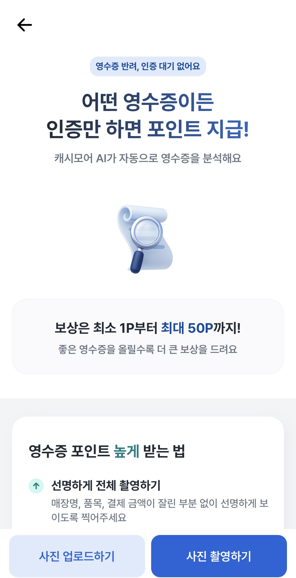 - 어떤 영수증이든 OK! (하루 최대 3장까지)