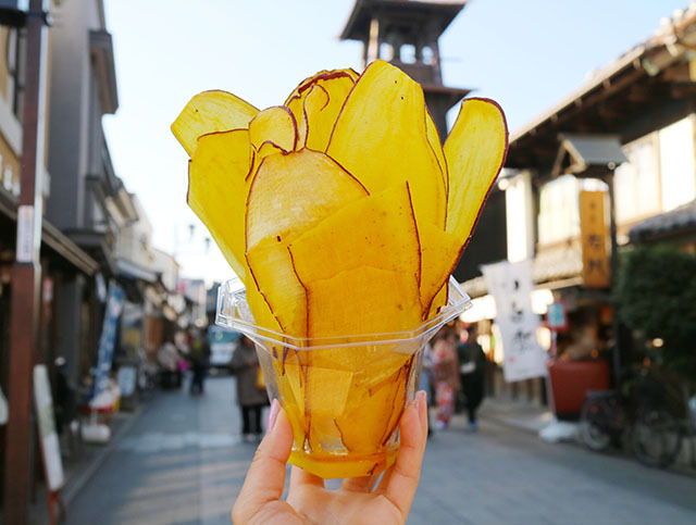 가와고에는 고구마가 특산품입니다. 고구마 칩, 고구마 아이스크림, 고구마 만쥬 등 달콤한 디저트가 넘쳐납니다.