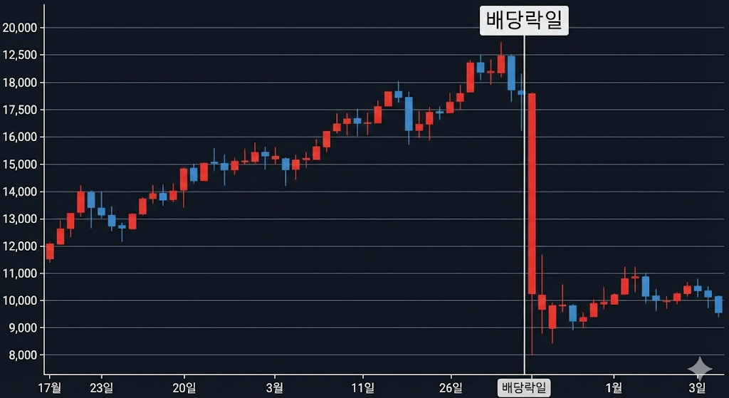 - 현상: 배당락일에는 배당금만큼 주가가 하락해서 시작하는 경우가 많습니다.