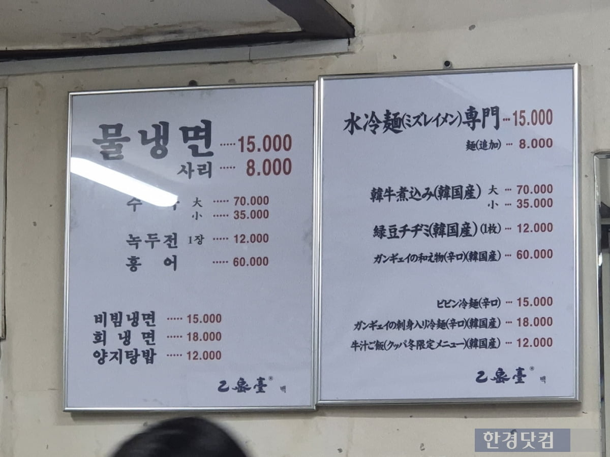 - 냉면 한 그릇: 15,000원 ~ 16,000원