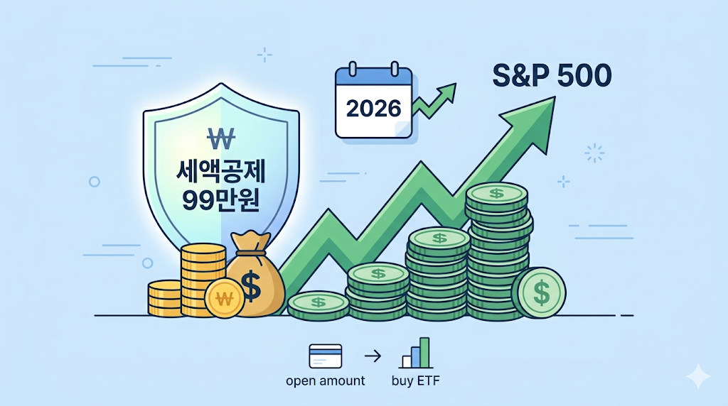 - 이 계좌 안에서는 TIGER 미국S&P500 같은 국내 상장 해외 ETF를 살 수 있으며, 발생한 수익금과 배당금에 대해 당장 세금을 1원도 떼지 않습니다 (과세이연).