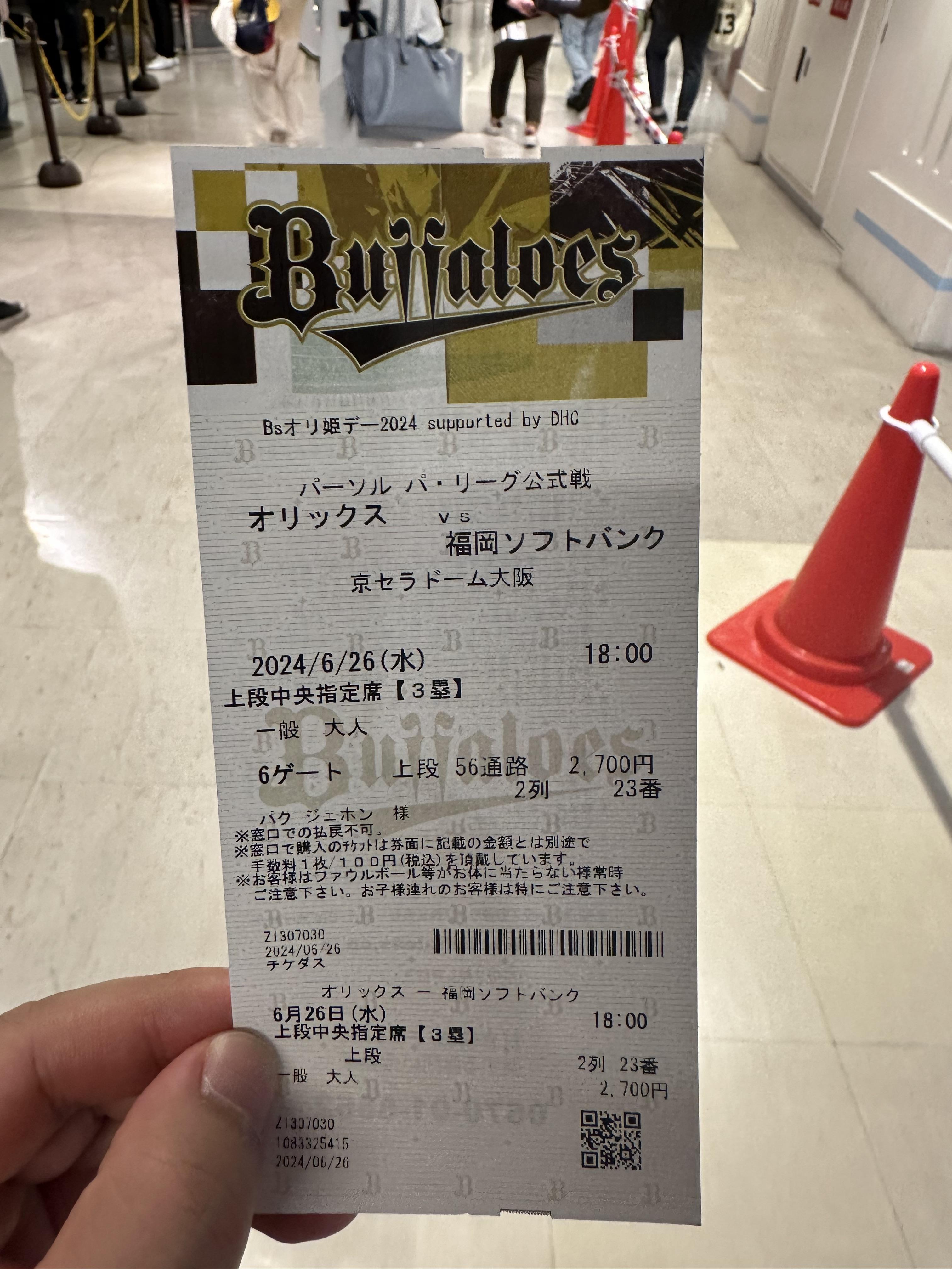 저번에 고시엔에서 한신타이거즈 경기를 봤었는데 너무 좋았던 기억이 있어서 이번에는 오릭스의 경기를 보러 가볼까하여 예매했다.